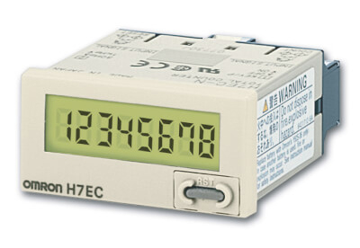The H7E series is available with large display with 8.6mm character height. It includes models with backlight for improved visibility in dimly lit places. The H7E family includes total counters, time counters, tachometers and PCB-mounted counters.
