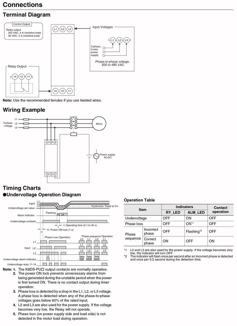 K8DS-PU, tek bir ünitede 3 kablolu devrelerin yer aldığı, basitleştirilmiş, trifaze izleme rölesidir. Düşük gerilimler, faz sırası ve faz kaybını izleyebilmektedir.